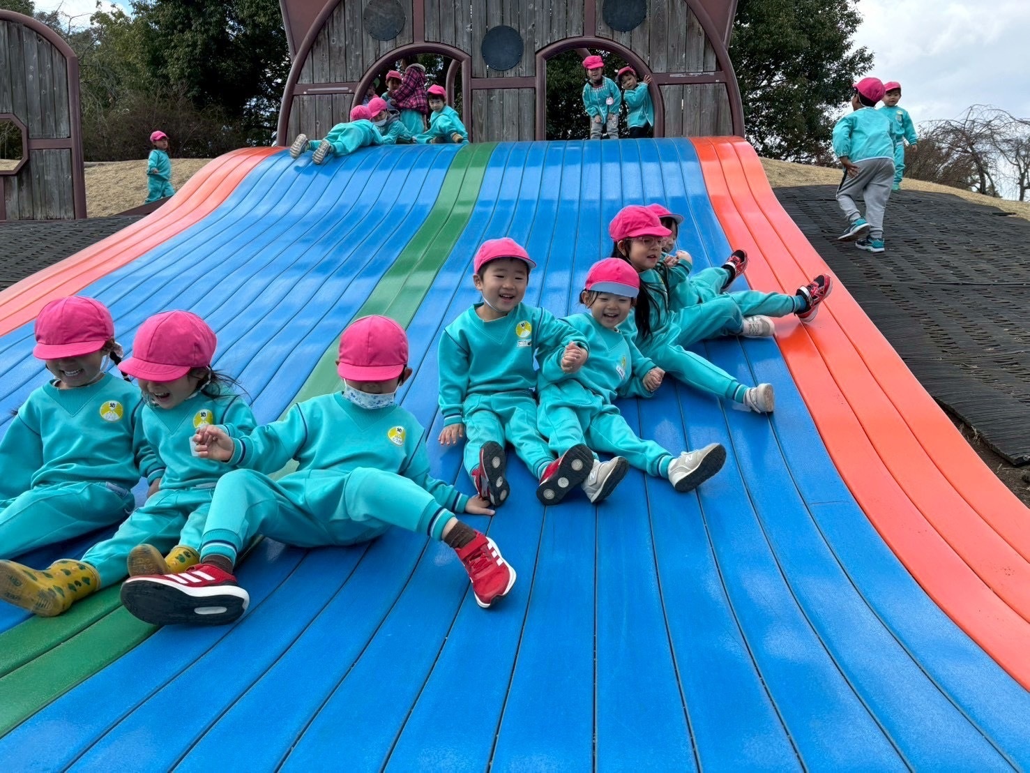 大きなバスに乗って大好きなお父さん、お母さんそして大好きなお友達と行く遠足はとっても楽しそうでみんなの笑顔がはじけていました♪